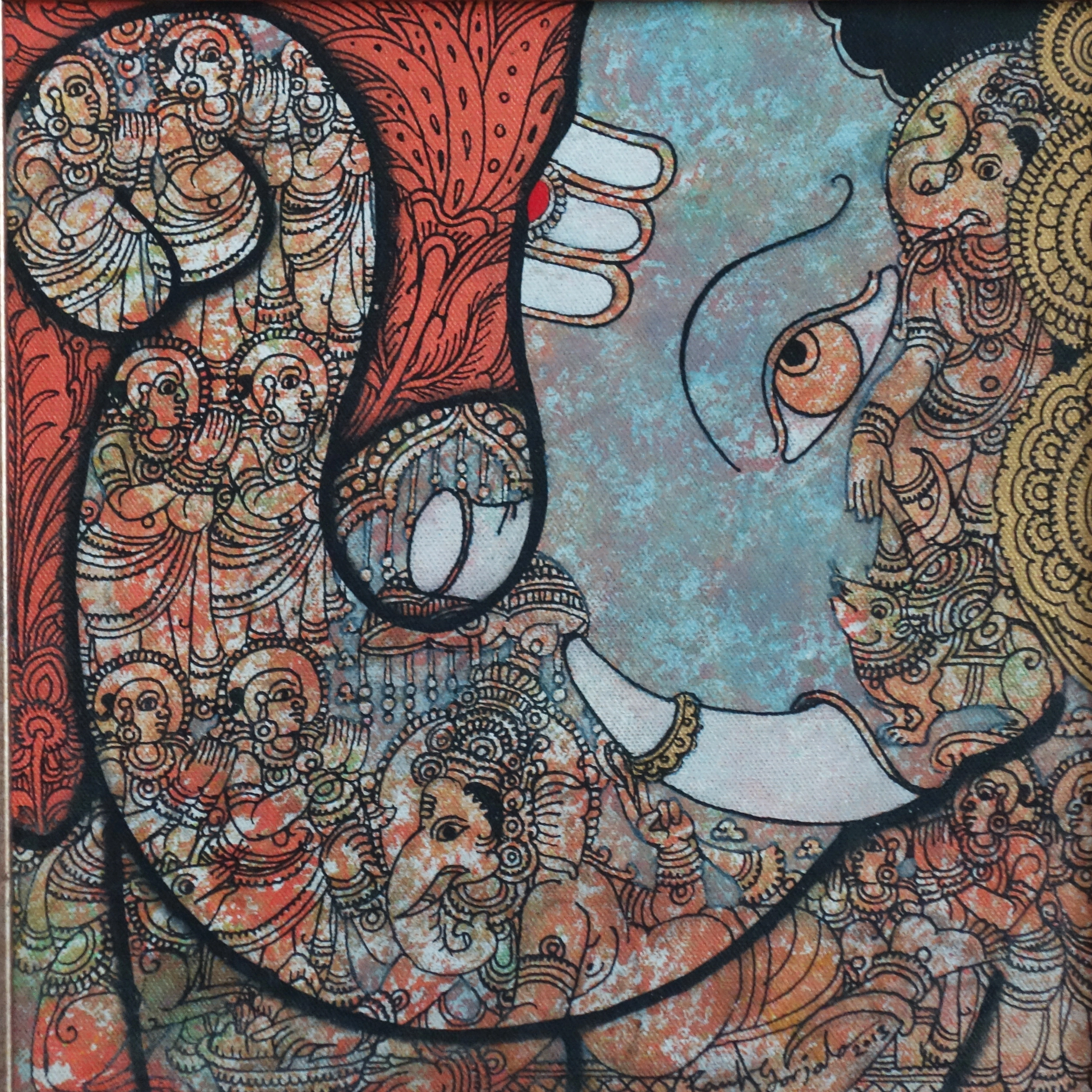 "Bengali Pop Art, Acrylic on paper, 12'' x 8.5"
